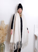 This scarf is a staple for your winter accessory collection. Featuring a super soft material with a fringe trim design, we are obsessed.