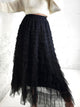 This Tiered Ruffle Tulle Midi Skirt is the perfect addition to your occasion-wear collection. Featuring an elasticated waistband and tiered ruffle design, this skirt is both comfortable and stylish.